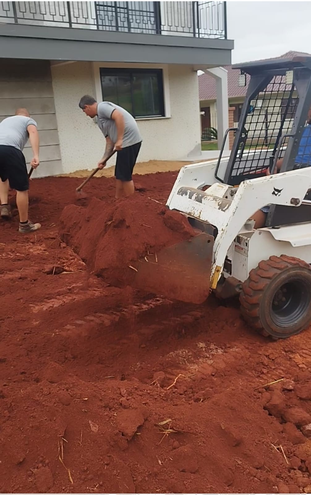 Remoção de excesso de terra, materiais e organização da área para iniciar o serviço.